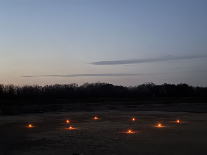 ナイトフライトを実施する際は、ヘリポート北側にあるノースグラスエリアに境界灯を設置し、これを有効に活用することで、離着陸を行うことができます。