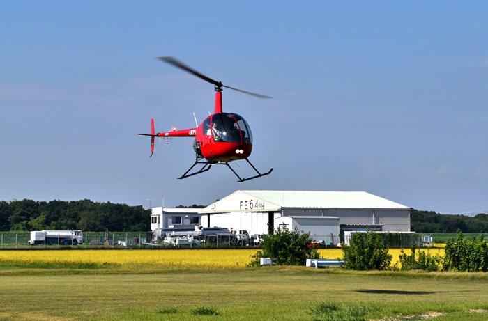 ヘリコプターの操縦訓練を連日実施するアルファーアビエィション下妻運航所で訓練生が初単独飛行を実施しました。