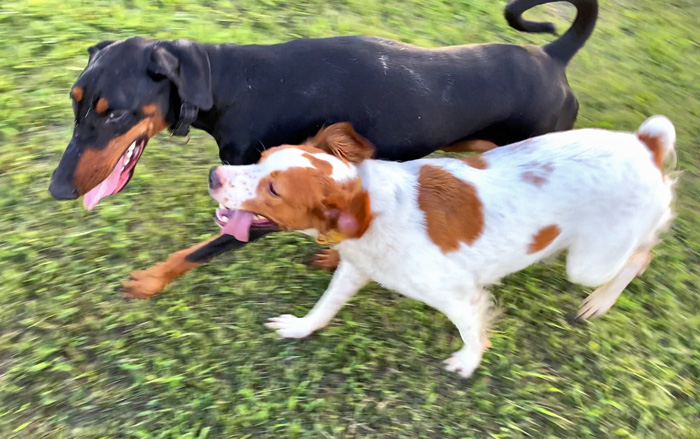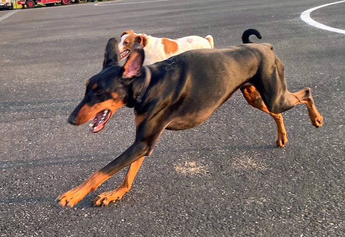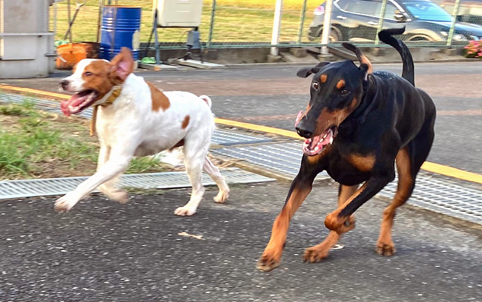 常に全力で走り回る二匹を見ていると、訓練生やスタッフも癒されます。 とっても仲がいいんです。