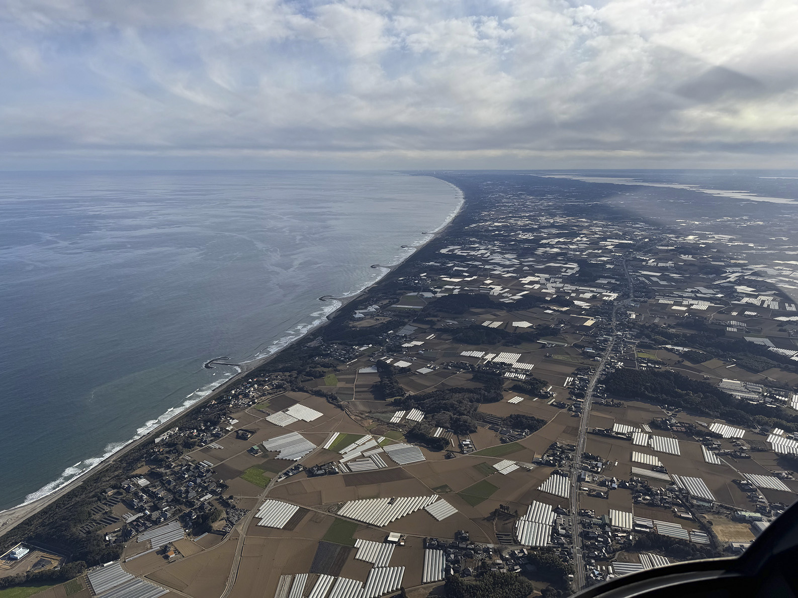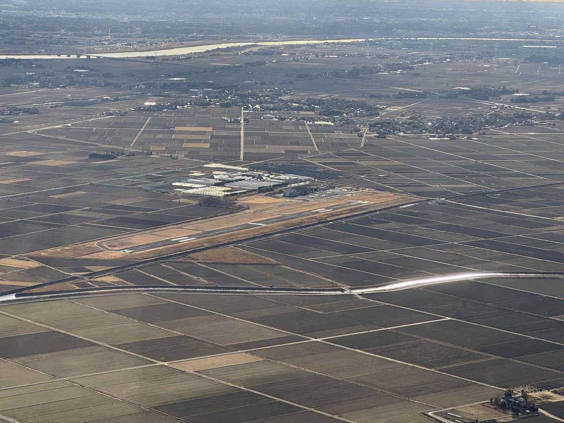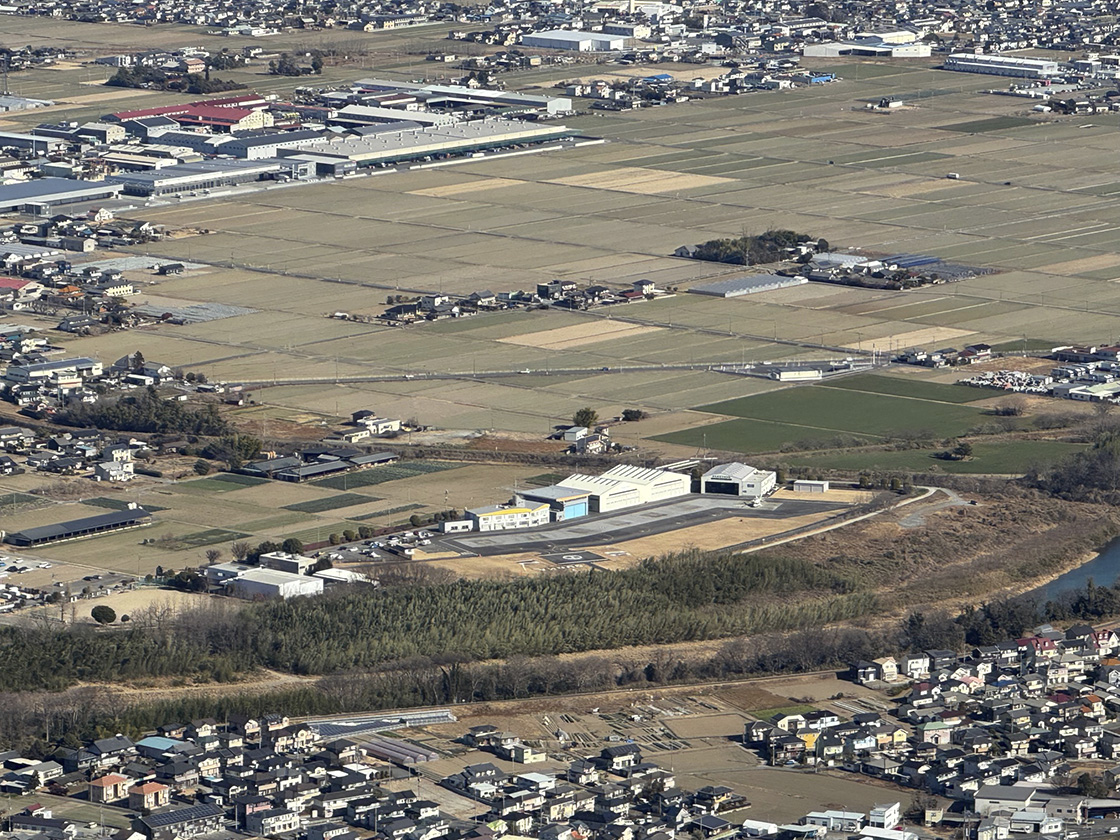 銚子からは成田空港の特別管制区(PCA)のエリア外(エリアの下方)を飛行して竜ケ崎にある竜ケ崎飛行場の位置が確認できました。 800m×35mの滑走路があり、弊社が所有するアグスタ機の緊急時の着陸場所候補地にもなっています。