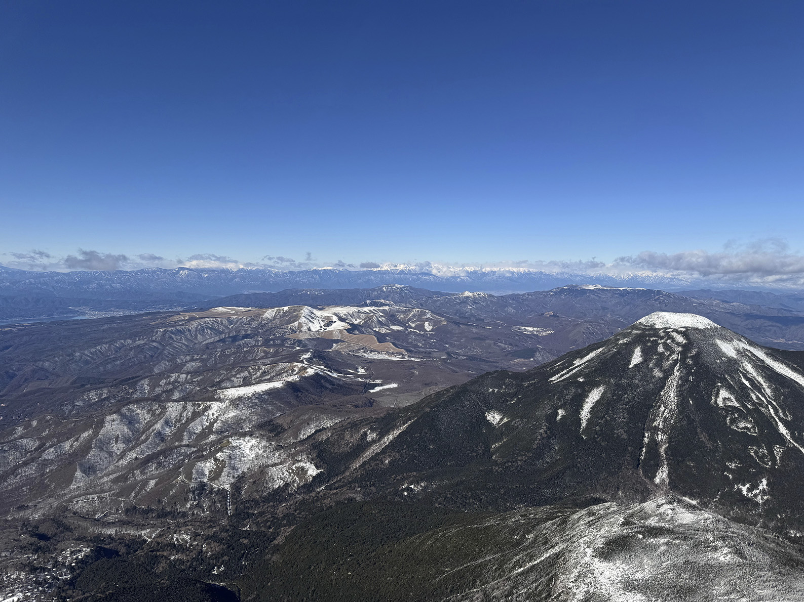 本日は、甲府から諏訪、群馬を経由し銚子方面に飛行しました。先ずは八ヶ岳の赤岳や蓼科山の頂上付近を飛行しました。