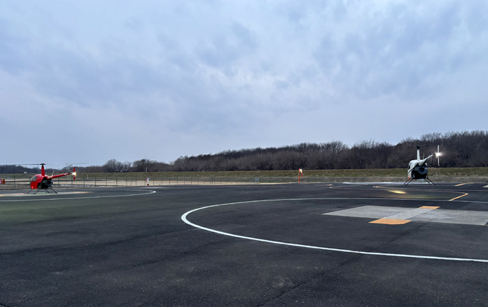 ヘリコプター免許の取得に向けて訓練生が連日頑張るアルファーアビエィション下妻運航所ですが、ナイトフライトの訓練を含め、すぐ上空にある訓練エリアでの各種操作、緊急時の操作、航法訓練等、免許取得に必要なすべての飛行訓練をこのヘリポートから開始することができます。