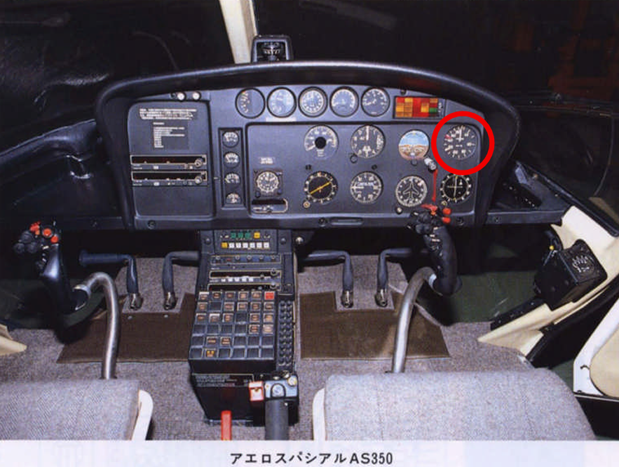 下の写真はエアバス社製AS350の計器盤です。赤丸の部分が速度計になっています。